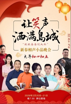 演出介绍:当曲艺的韵味碰撞新年的期许,当相声的包袱遇上小品的温情,一场充满欢笑与温馨的视听盛宴即将登陆岛城!“让笑声洒满岛城——祝福2026 相声小品专场曲艺晚会”重磅启幕,汇聚相声、小品、评书、鼓曲等多元曲艺形式,用最鲜活的演绎、最密集的笑点,陪你奔赴2026年的温暖与欢喜~