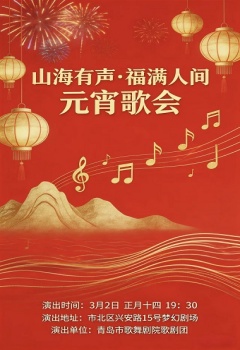 演出介绍:上元良宵,月华如练;华灯初上,星河入梦。在2026年甲午春节的喜庆余韵中,我们即将迎来一年一度的元宵佳节。值此花好月圆、灯火璀璨的美好时节,一场以音乐传递温暖、以歌声凝聚情怀的艺术盛宴——山海有声·福满人间 元宵歌会,将于2026年3月2日(正月十四)晚19:30,在青岛市歌舞剧院梦幻剧场温情上演。本场演出由青岛演艺集团歌舞剧院精心策划、青岛市歌舞剧院歌剧团倾情呈现。